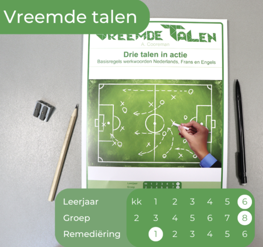 Het boek Vreemde talen: drie talen in actie combineert Nederlands, Frans en Engels om leerlingen de kans te geven te redeneren over talen heen. Met het uniek werkwoordschema ‘het 9-veld’ worden werkwoorden inzichtelijk in plaats van een geheugenoefening.
